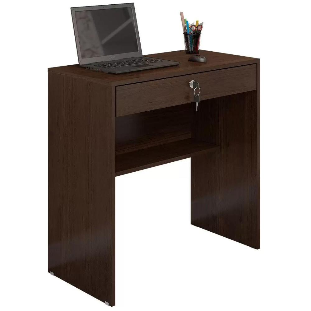 Com design compacto, é perfeita para quem precisa otimizar espaços, oferecendo uma superfície ideal para notebook, materiais de estudo ou trabalho. A prateleira inferior amplia as possibilidades de organização, acomodando livros, pastas e objetos diversos.