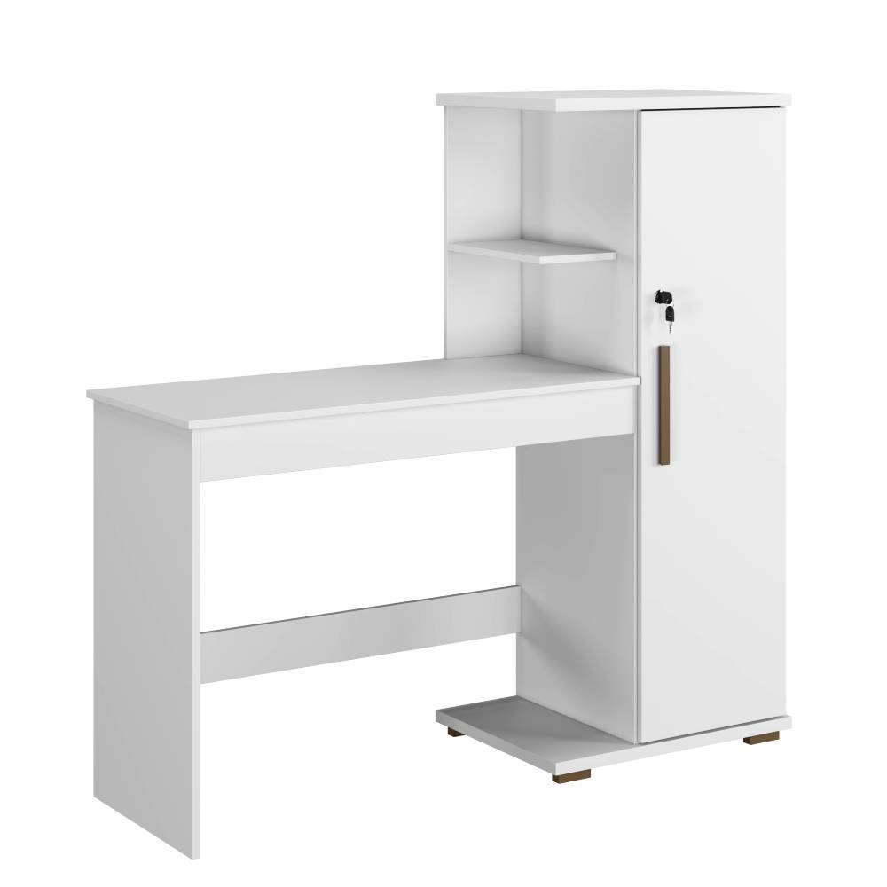 A Escrivaninha Savana Branco da Arte Móveis foi pensada para quem precisa de um ambiente de trabalho funcional, seguro e com estilo. Com design moderno e linhas retas, ela oferece um espaço completo para home office ou estudo, integrando bancada ampla, nicho organizador e armário com chave para mais segurança.