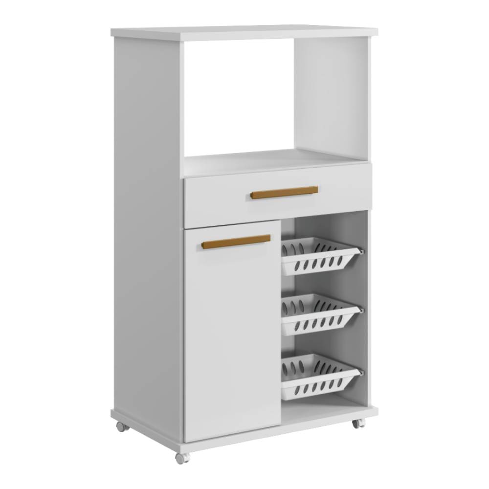 A Fruteira Fortaleza Master – Branco é a solução perfeita para organizar sua cozinha com praticidade, estilo e funcionalidade. Desenvolvida para facilitar o dia a dia, ela reúne em um único móvel: nicho para micro-ondas ou eletros, 1 gaveta funcional, 1 porta com prateleira interna e 3 cestos plásticos ideais para frutas e legumes.