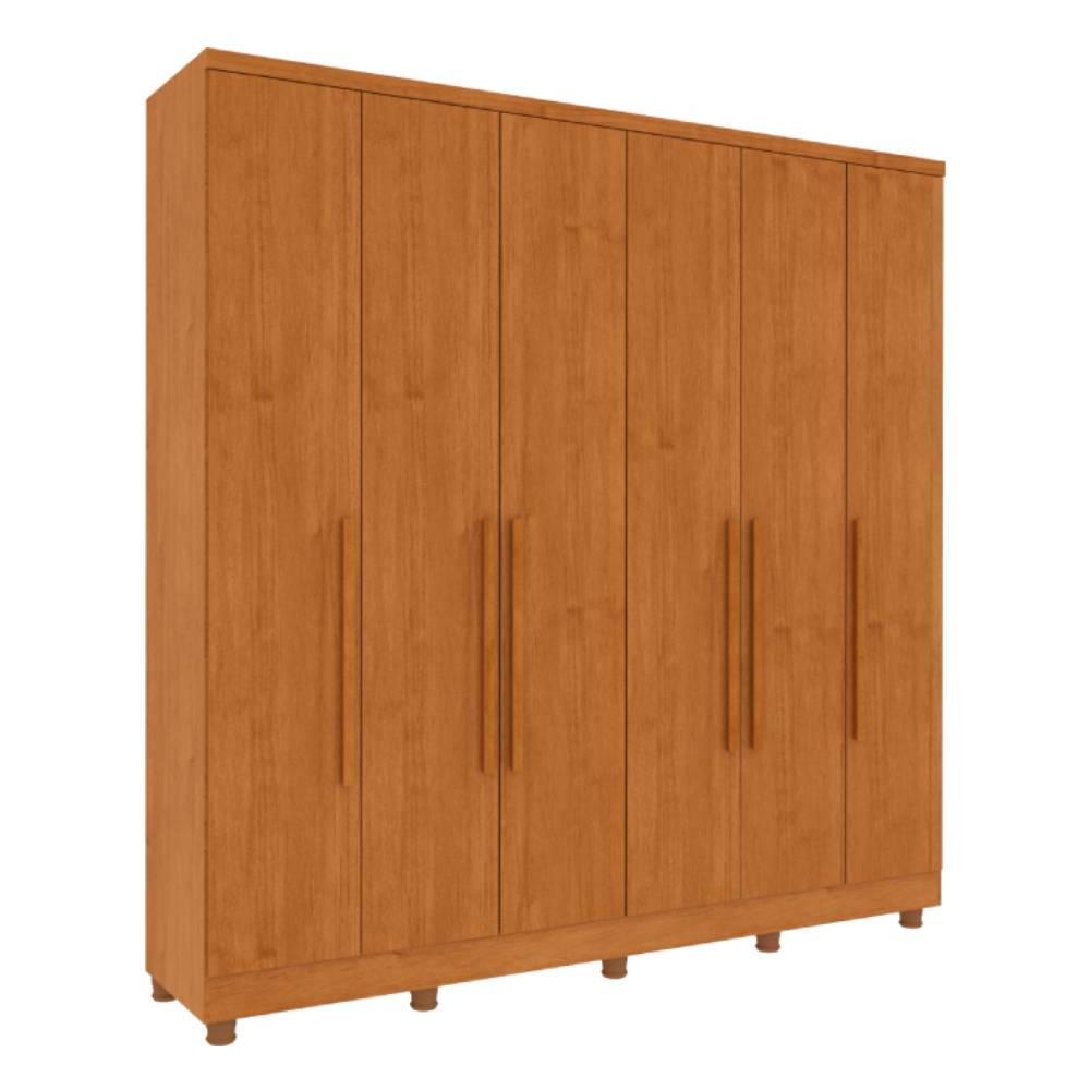 Com 6 portas bem distribuídas, que garantem praticidade para o dia a dia. O modelo conta com puxadores alongados em MDF, gavetas internas funcionais, cabideiros resistentes em alumínio e dobradiças de 26 mm, que garantem maior firmeza e durabilidade.