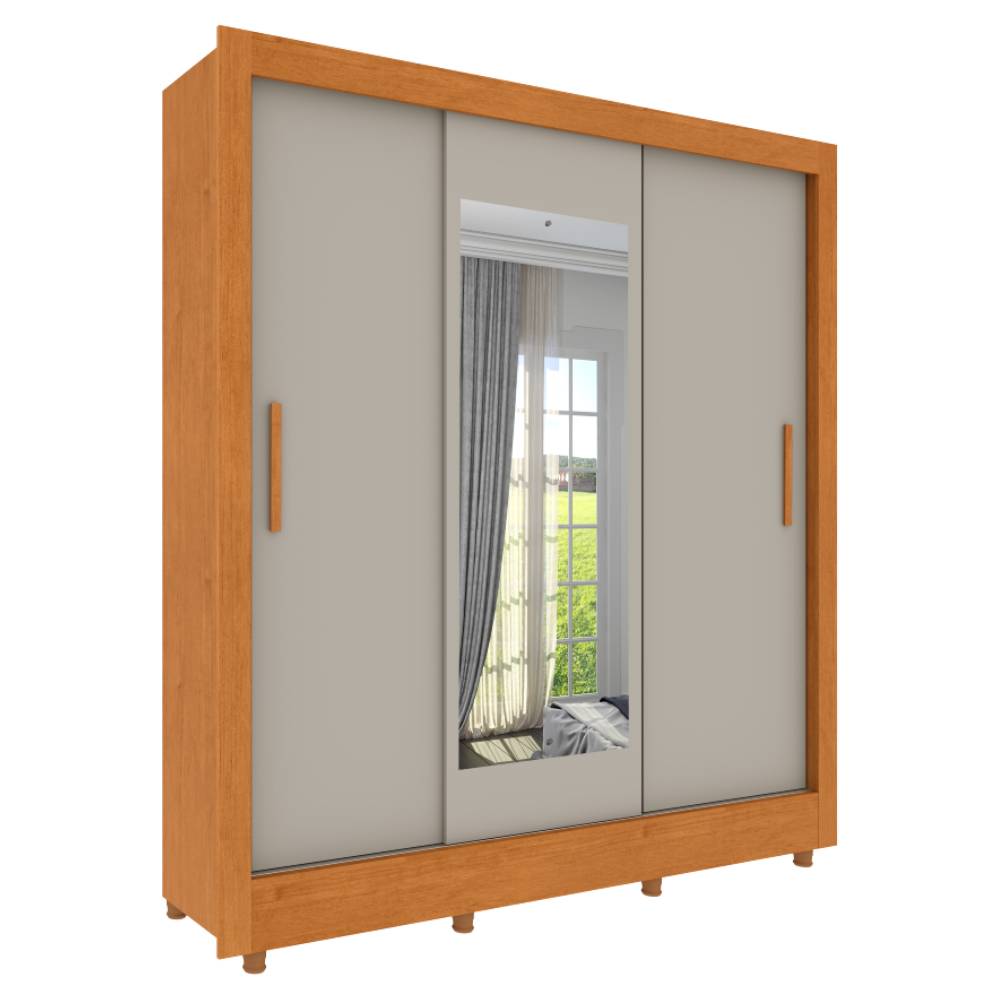 O Guarda Roupa Vitória da TCIL é a escolha perfeita para quem busca um móvel funcional e sofisticado. Com design moderno na combinação Cinamomo e Off White, este roupeiro de 3 portas de correr conta com espelho central, ideal para ampliar o ambiente e facilitar o dia a dia.