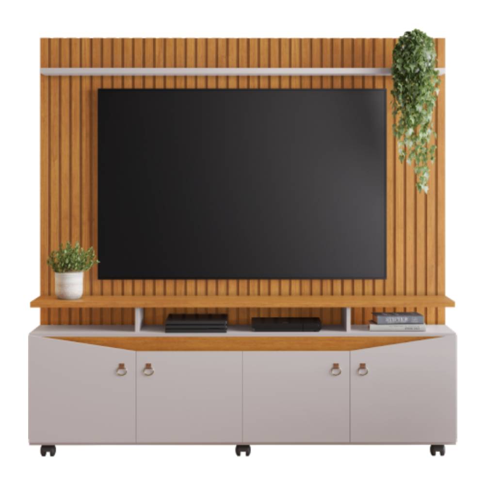 O Home Conceito Cinamomo/Off White da JCM foi desenvolvido para transformar sua sala em um ambiente moderno, elegante e funcional. Seu design com painel ripado e iluminação LED cria um visual sofisticado, enquanto o rack com portas inclinadas garante organização com estilo.