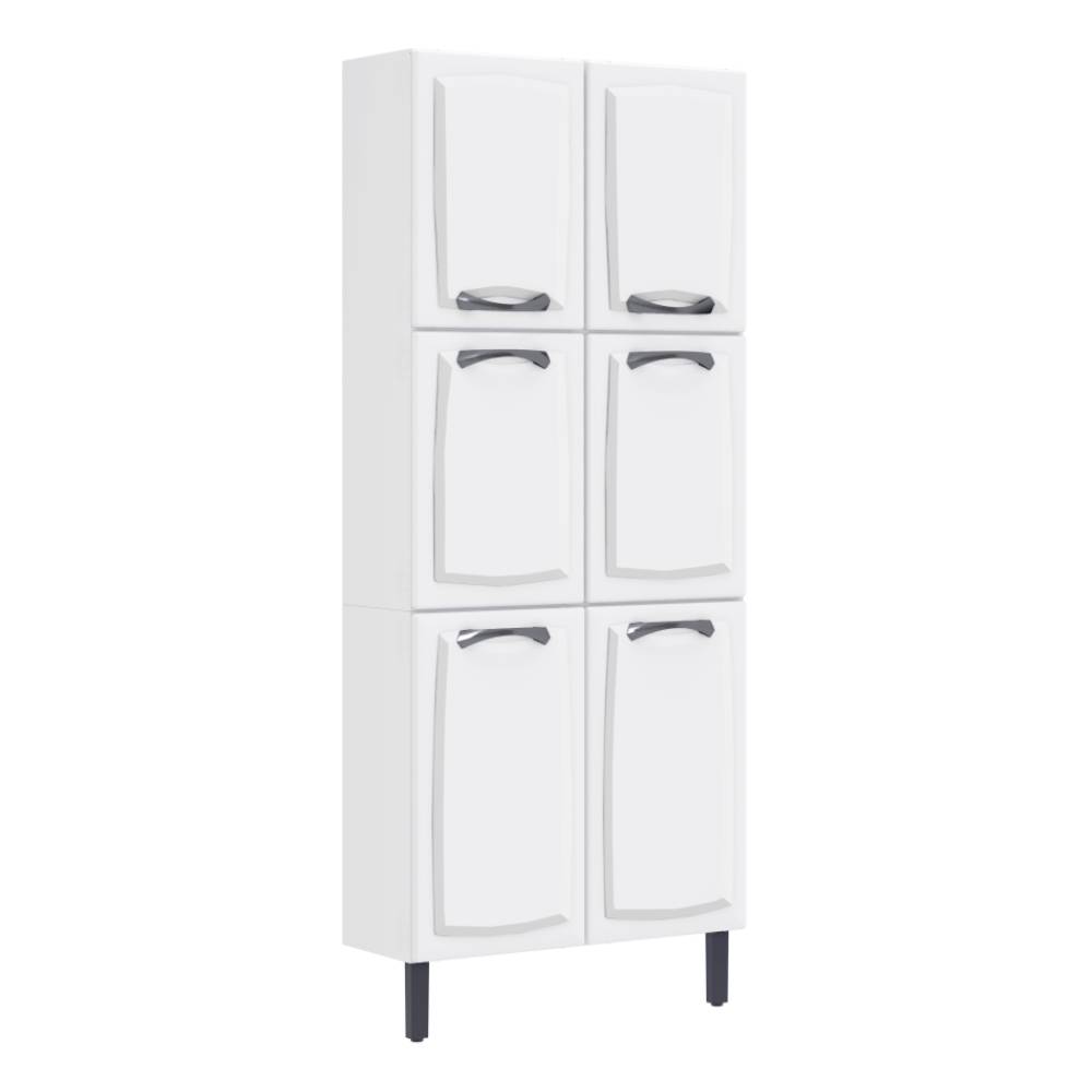 Sua estrutura é 100% em aço com pintura eletrostática, o que garante maior durabilidade e resistência à umidade. Com 6 portas e 6 prateleiras internas, você acomoda louças, mantimentos e utensílios com muito mais praticidade. O acabamento branco em semibrilho e os puxadores plásticos robustos adicionam um toque moderno ao conjunto, ideal para qualquer estilo de cozinha.
