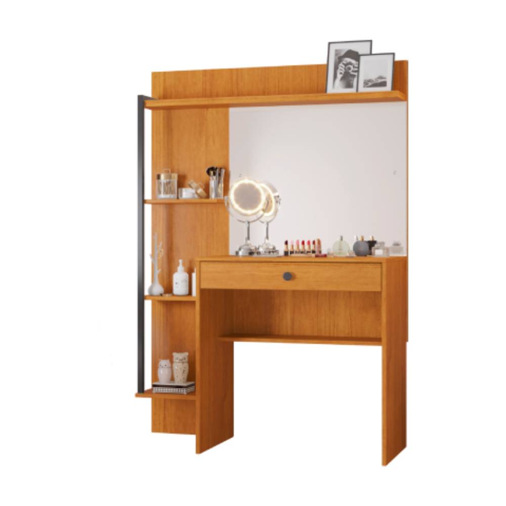 A Penteadeira Camarim Encanto Cinamomo JCM Móveis foi criada para quem ama praticidade e estilo no dia a dia. Com um design moderno e elegante, ela traz um amplo espelho que ilumina e valoriza o momento de autocuidado, além de oferecer compartimentos funcionais para manter tudo organizado e sempre à mão.